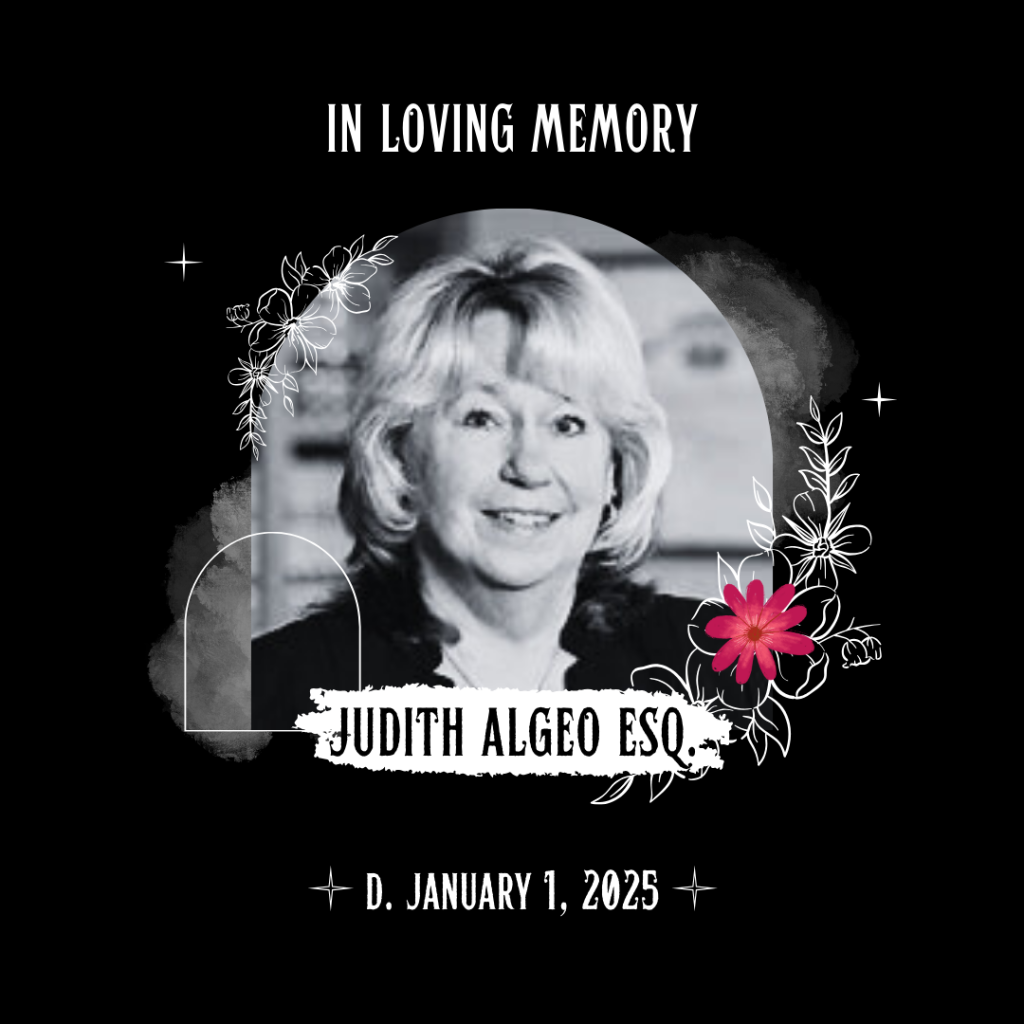 We mourn the passing of Judith A. Algeo, a trailblazer, dedicated public servant, and cherished member of our community. Judith was a respected Bucks County family law attorney and Chairperson of the Warwick Township Board of Supervisors. She represented individuals in family law with compassion and professionalism, while also advocating for neglected and abused children as a Guardian Ad Litem.